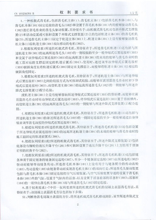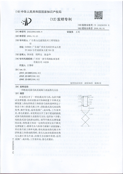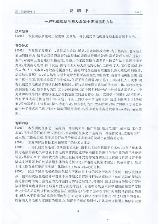 (凿毛)发明专利证书